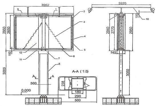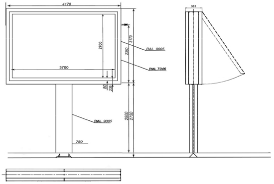 | Вид конструкции | Схема | Пример | Высота, м. | Ширина, м. | Высота опоры, м. | Способ показа | Количество сторон | Количество конструкций | Изготовление | Доставка | Установка | Срок изготовления | Срок доставки | Срок установки | Гарантия |