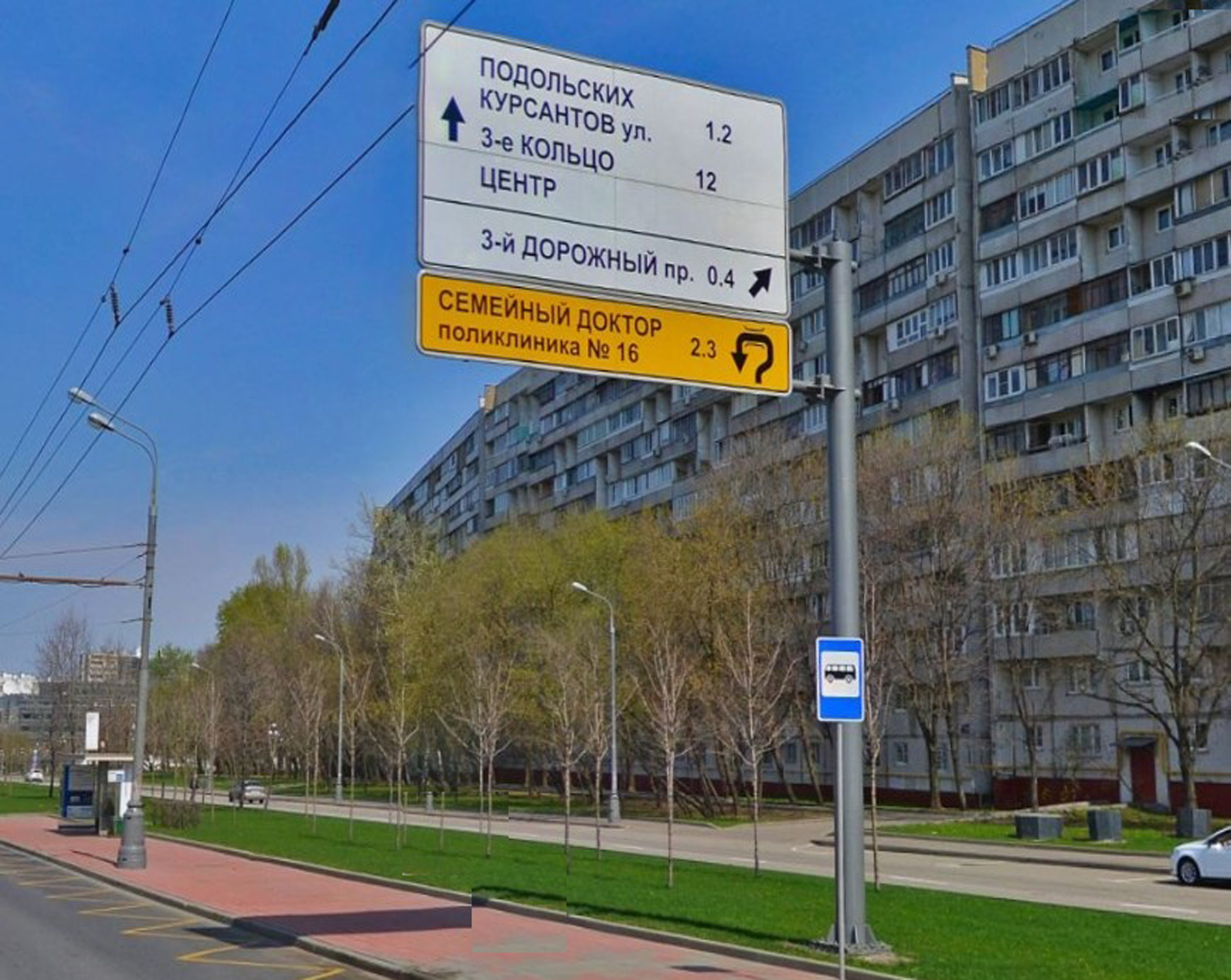 В условиях городской среды размещение информации о компании на дорожных указателях является эффективным средством продвижения бренда организации, поддержания внимания к вашему бизнесу, привлечения новых клиентов и удержания старых покупателей и заказчиков. Именно дорожные указатели, установленные на улицах города, помогают горожанам найти вас и купить необходимые товары или заказать услуги. Для размещения рекламы на дорожных знаках обращайтесь в рекламное агентство «Фасад Медиа Групп». Будем рады сотрудничеству.