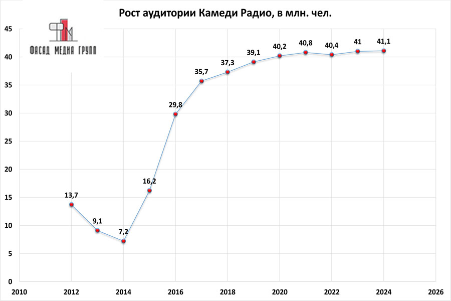 Для получения коммерческого предложения по размещению рекламы на «Камеди радио» в Александрове необходимо обращаться в рекламное агентство «Фасад Медиа Групп». Наши менеджеры подготовят медиаплан, составят график выхода, определят наиболее выгодное время выхода рекламы с учетом вашей целевой аудитории.