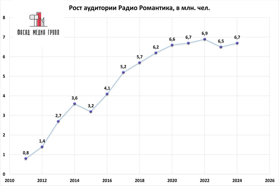 Показатели аудитории радио «Романтика» по России:
