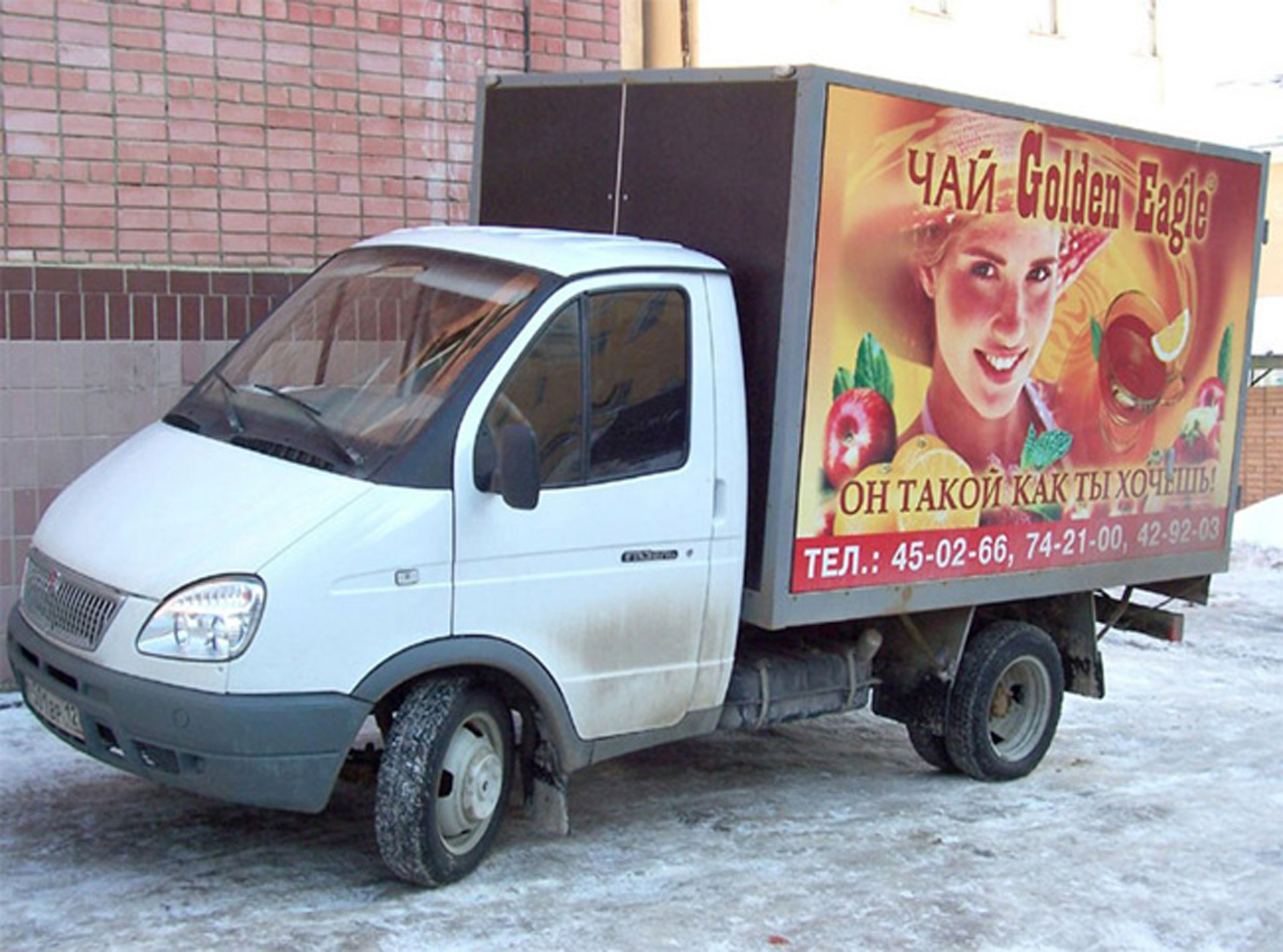 Приводим примеры монтажа рекламы на мобильных билбордах: