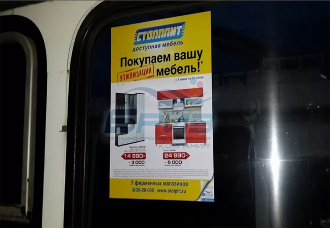 Монтаж рекламы в автобусах осуществляется по-разному в зависимости от того, какой рекламный материал и где размещается.