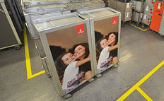 Постеры для рекламы на самолетах мы советуем печатать на скроллерной бумаге или на полиэтилентерефталатной пленке.
