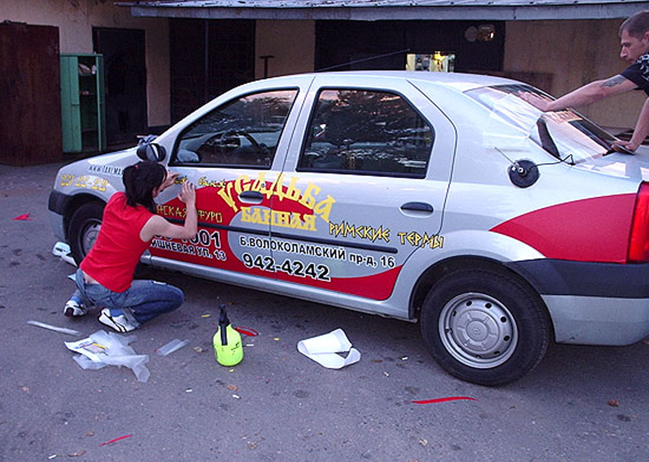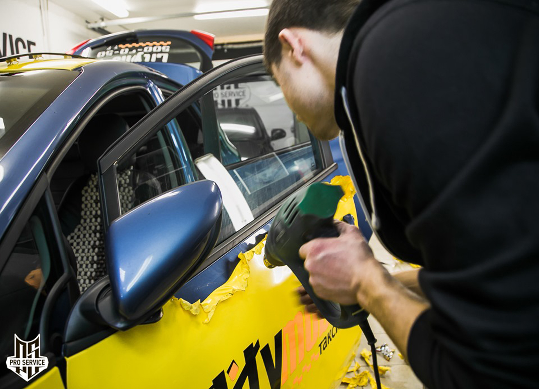 3) процесс брендирования (оклейки) такси рекламой: