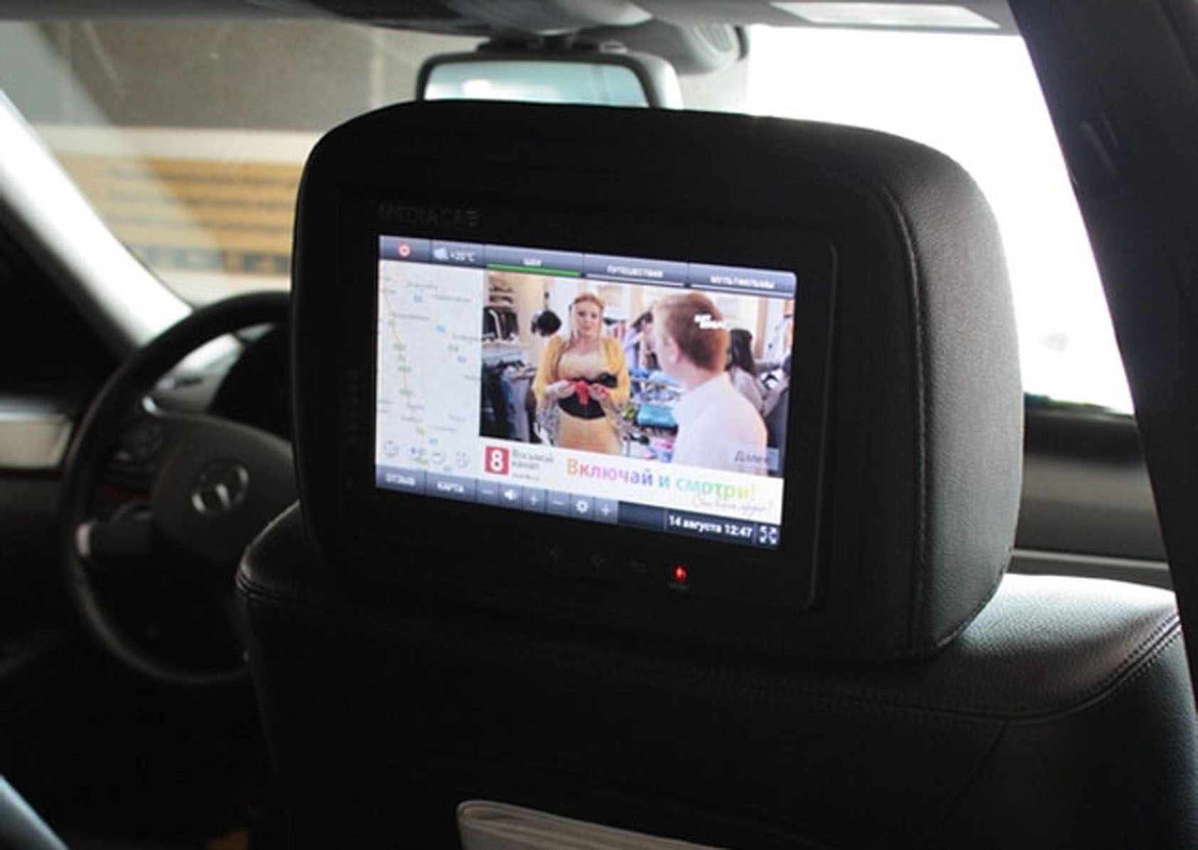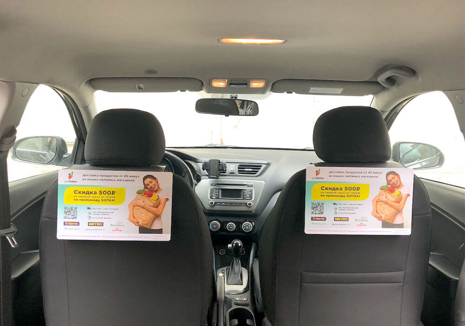 Реклама на подголовниках в такси на фото выше