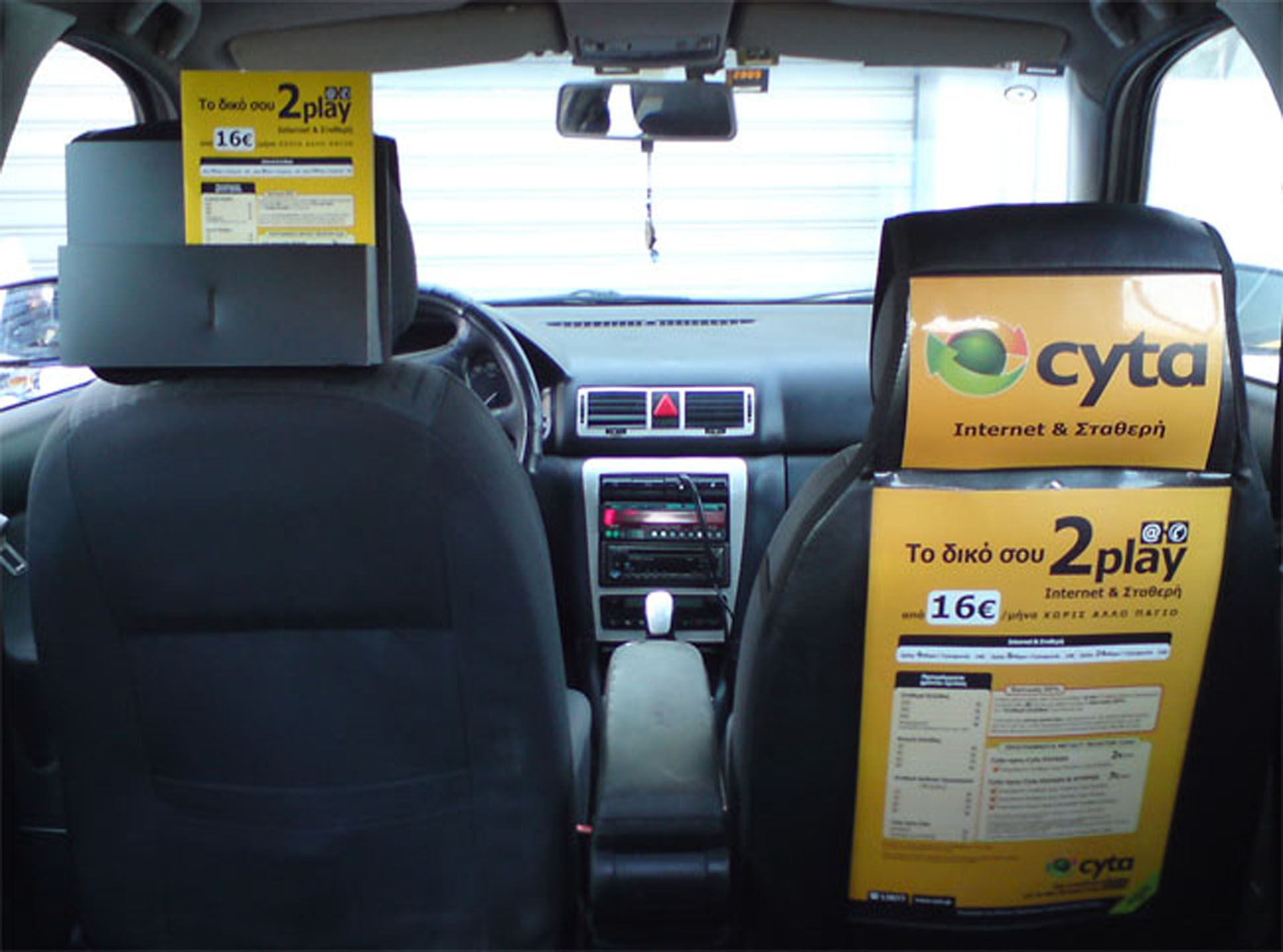 Рекламные стикеры в такси на фото выше