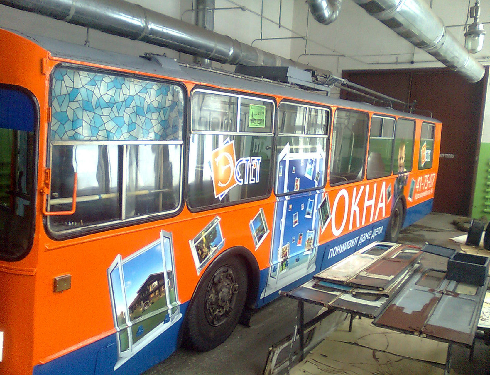 Пример брендирования троллейбуса самоклеящейся пленкой: