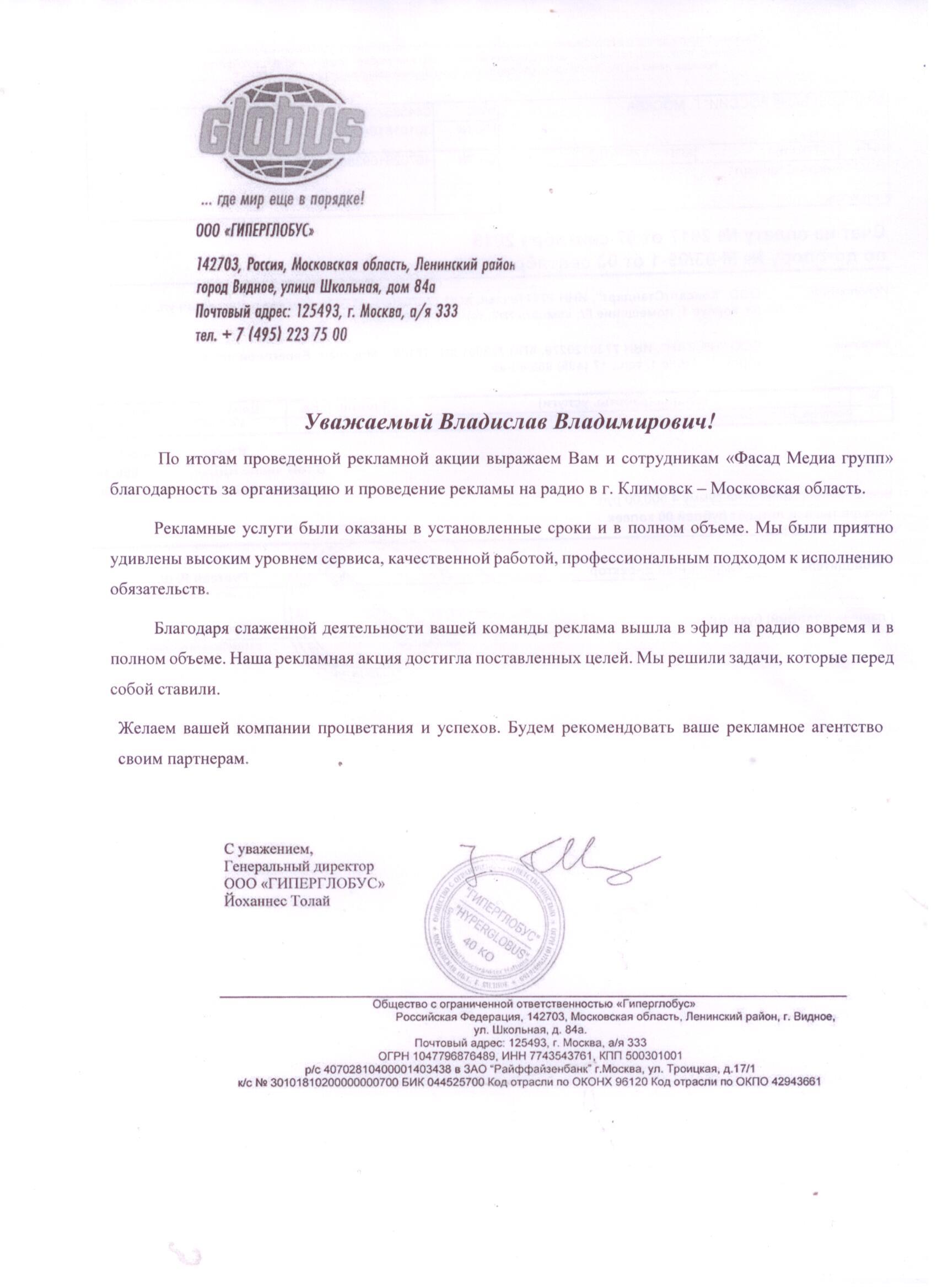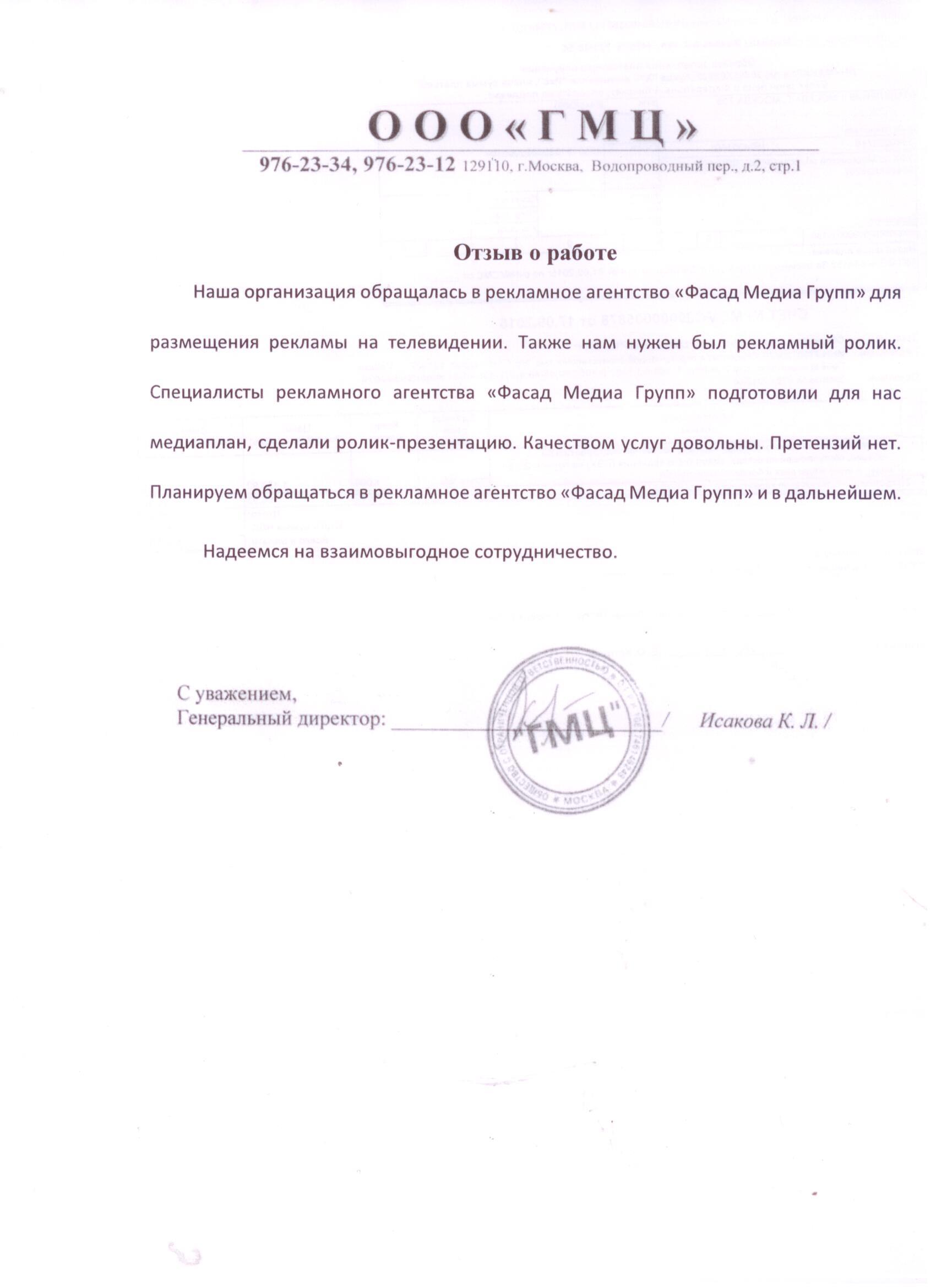 ООО «Фасад Медиа Групп» готовит и сопровождает рекламные кампании на ТВ: