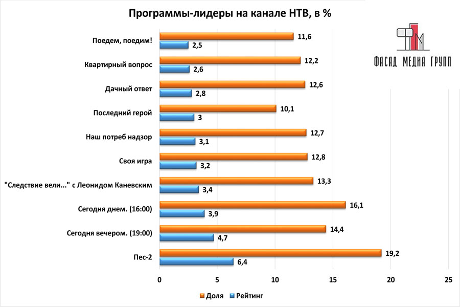 «НТВ» производит современный, качественный медийный контент. Отдельные передачи телеканала обладают большой популярностью у телезрителей. Данный факт способствует постоянному росту рейтингов телеканала и, как следствие, повышенному спросу на рекламное время.