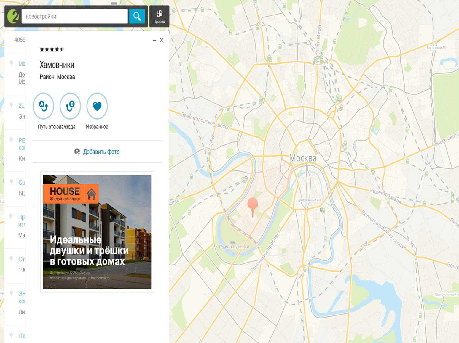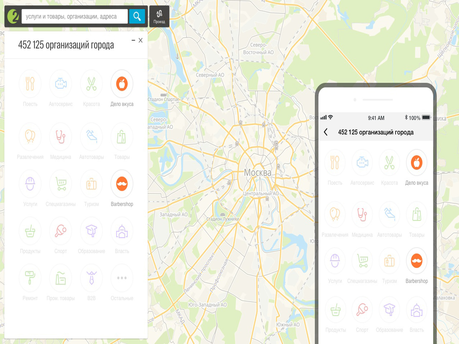 В 2ГИС (Двагис, ДубльГис) доступна геореклама – контекстная и медийная реклама, которую видит пользователь с учетом географии его интересов или текущего местоположения.