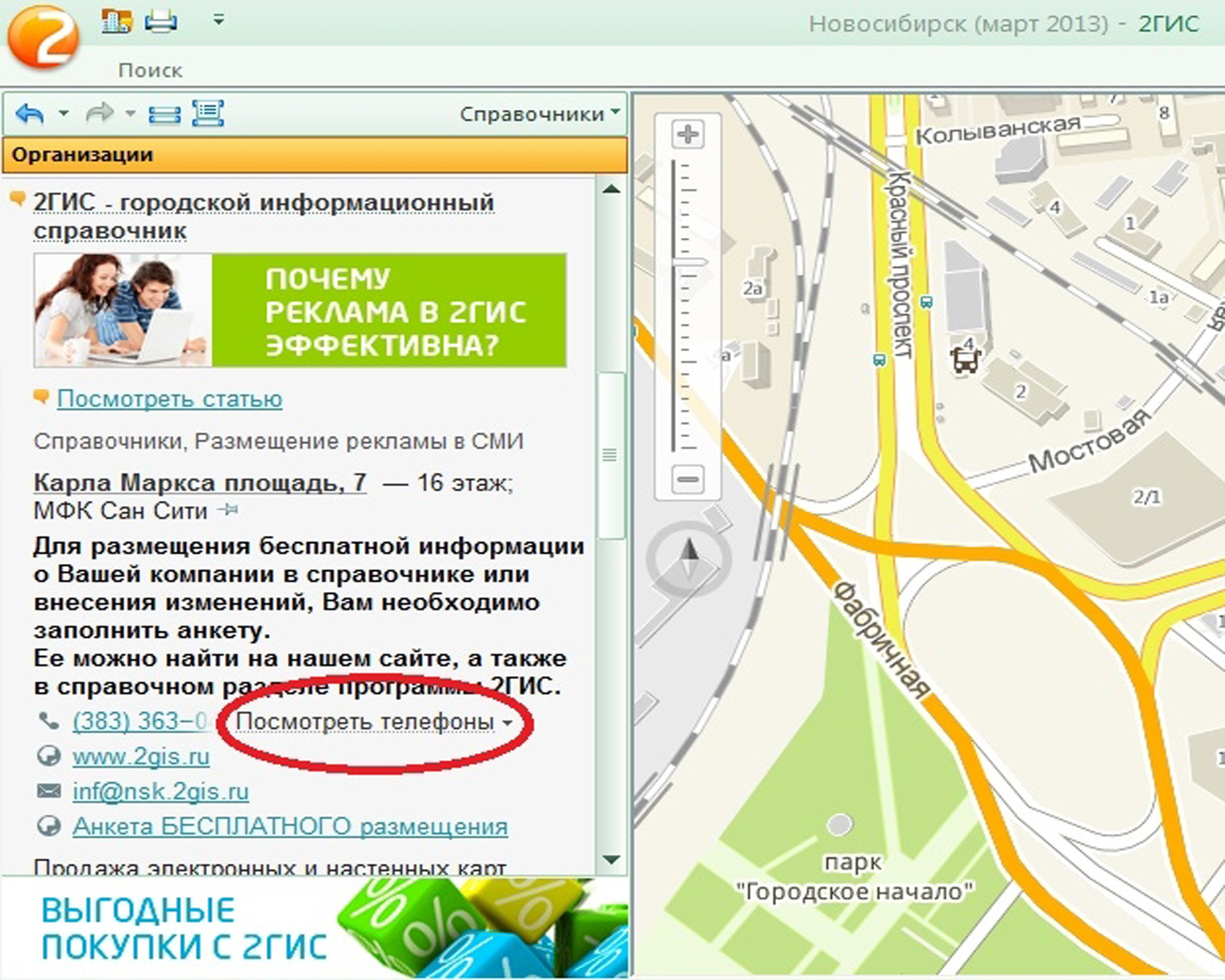 Основной источник доходов компании «2ГИС» – продажа рекламных мест на карте и в справочнике.