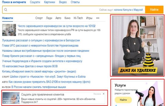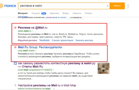 2. В зависимости от содержания рекламного объявления в Mail.ru (Мэйл):
