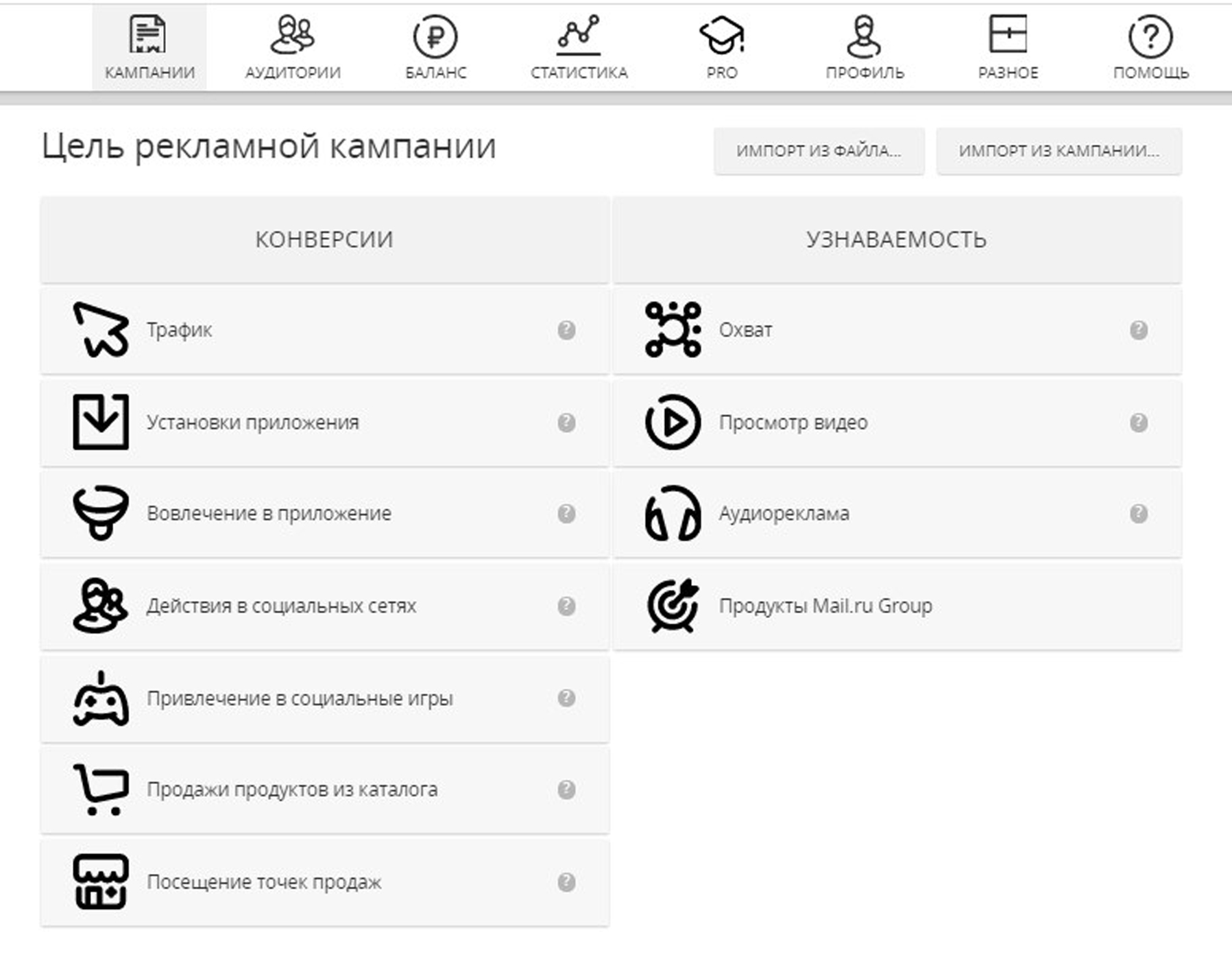 Следовательно, какую бы рекламную кампанию вы не намечали в Mail.ru (Мэйл), необходимо ясно представлять, какие цели вы планируете достичь.