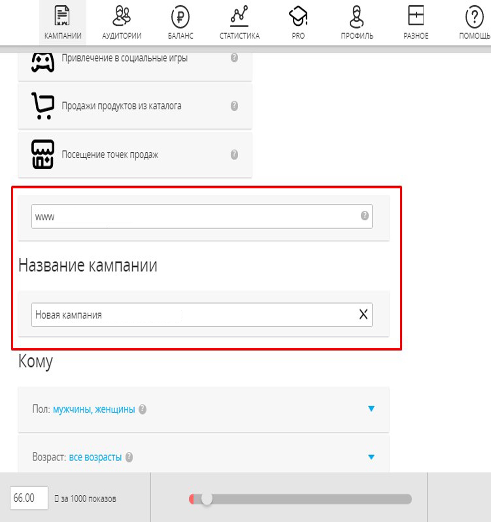 Поставьте цель рекламной кампании