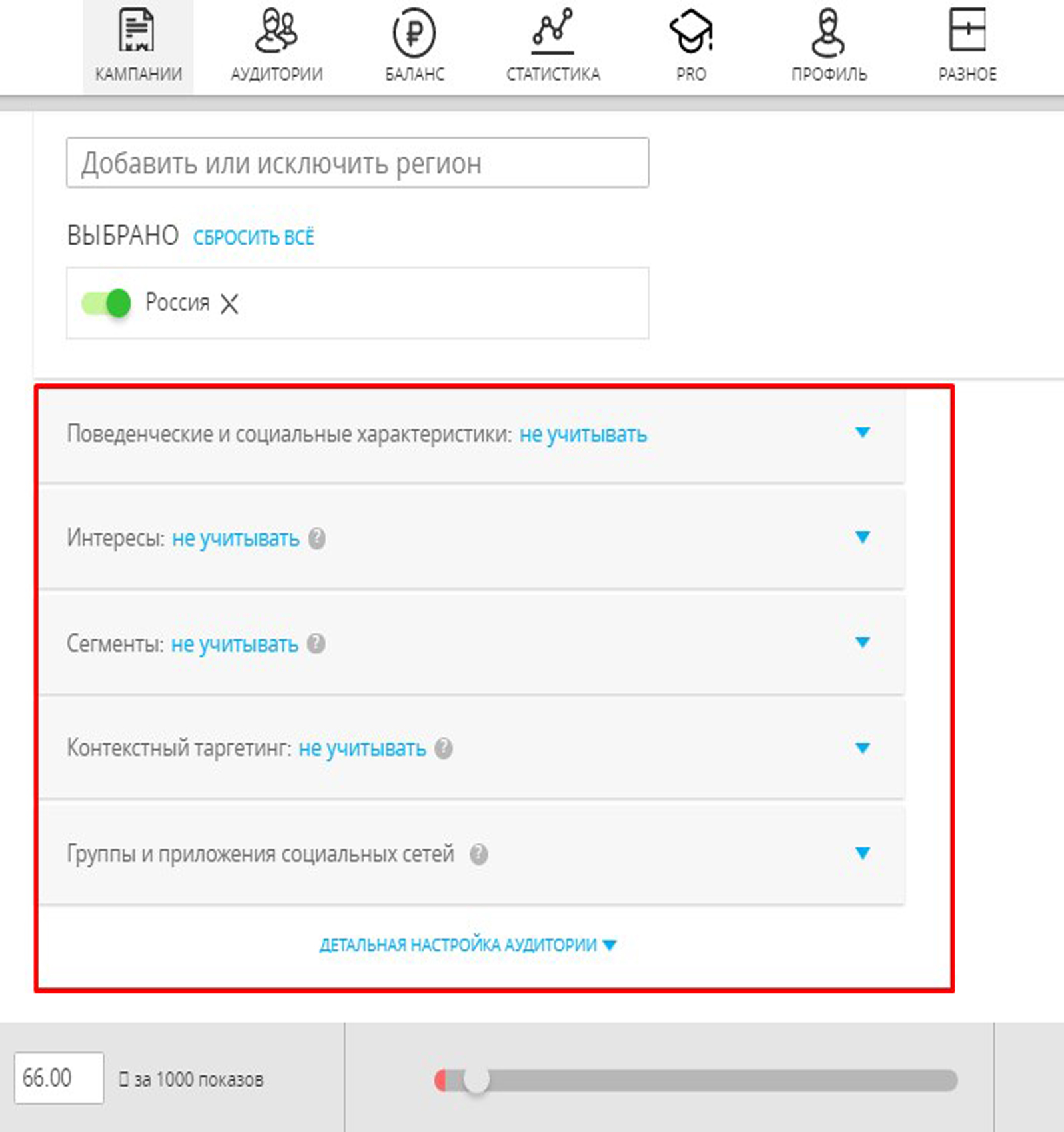 Работа с сегментами аудиторий |