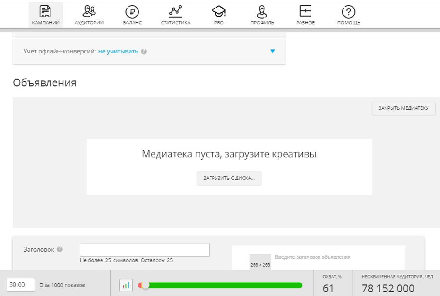 1) введите заголовок объявления. Заголовок рекламного объявления не должен быть более 25 символов;