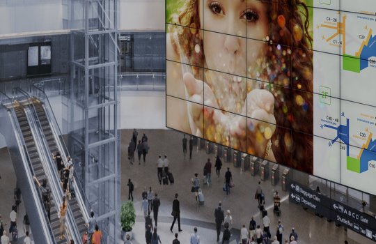 Пример рекламы на видеоэкране возле здания аэропорту: