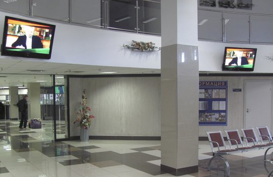 Пример рекламы на мониторе на автовокзале: