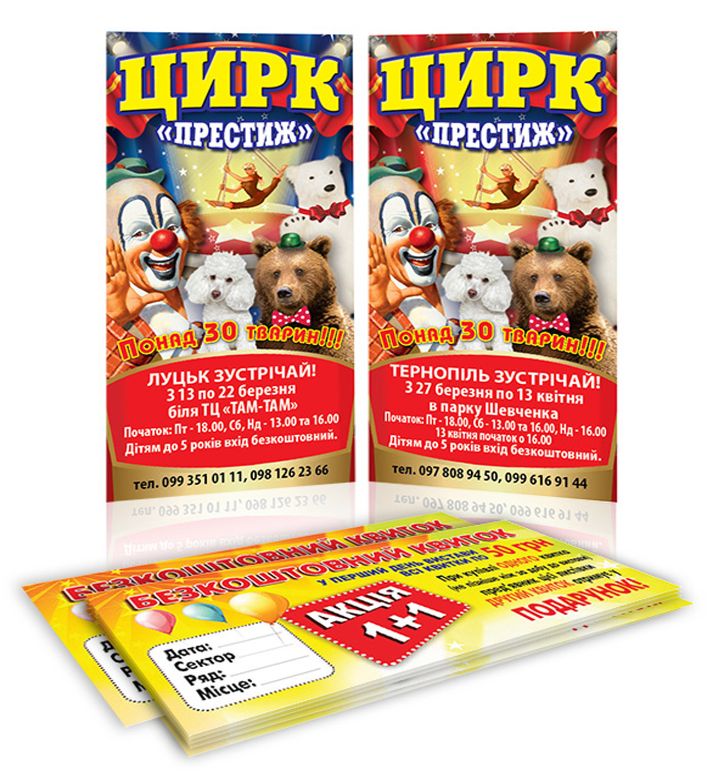 Реклама в цирке отличается тем, что рекламные материалы располагаются на уровне глаз потенциального клиента или покупателя. Удачное расположение рекламы приводит к тому, что листовки, буклеты и другие форматы рекламы в цирке хорошо видны и обеспечивают 100% читаемость со стороны посетителей.
