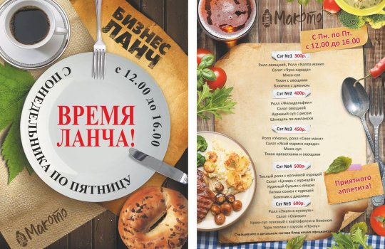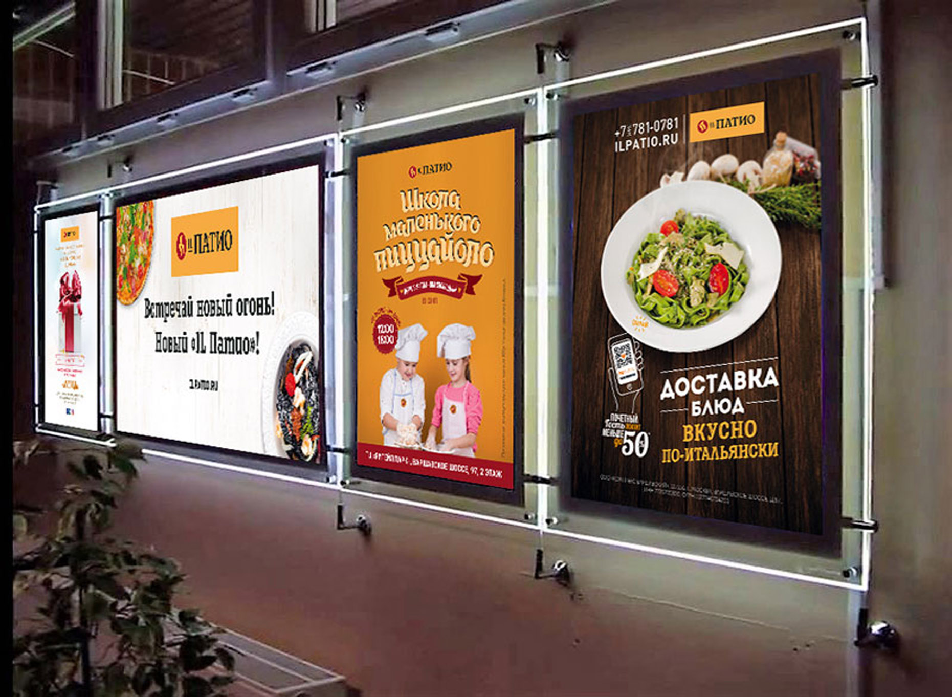 Примеры наших работ при размещении рекламы в кафе представлены ниже: