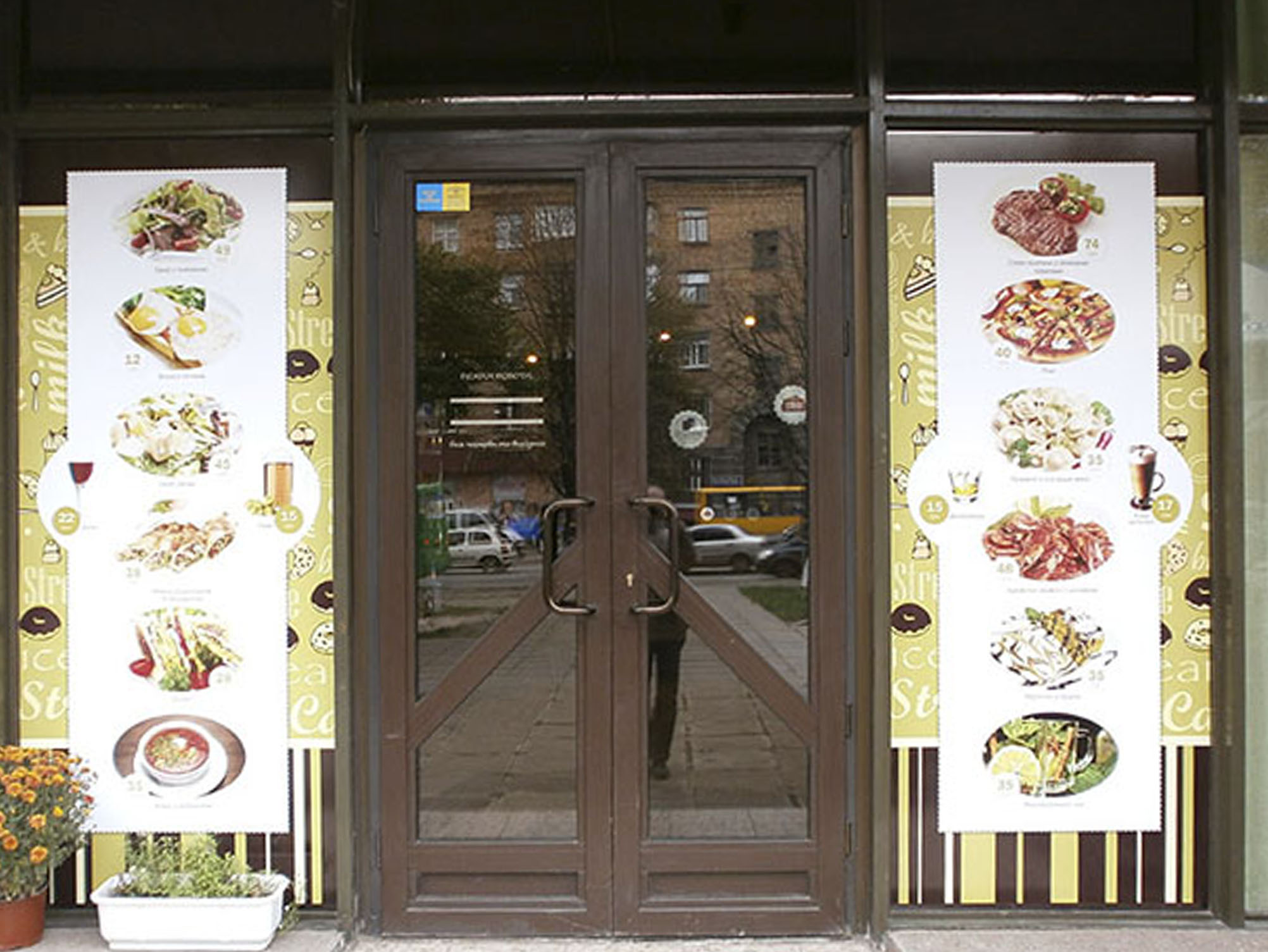 Баннер для размещения рекламы в кафе мы печатаем на виниле или на экофлексе.