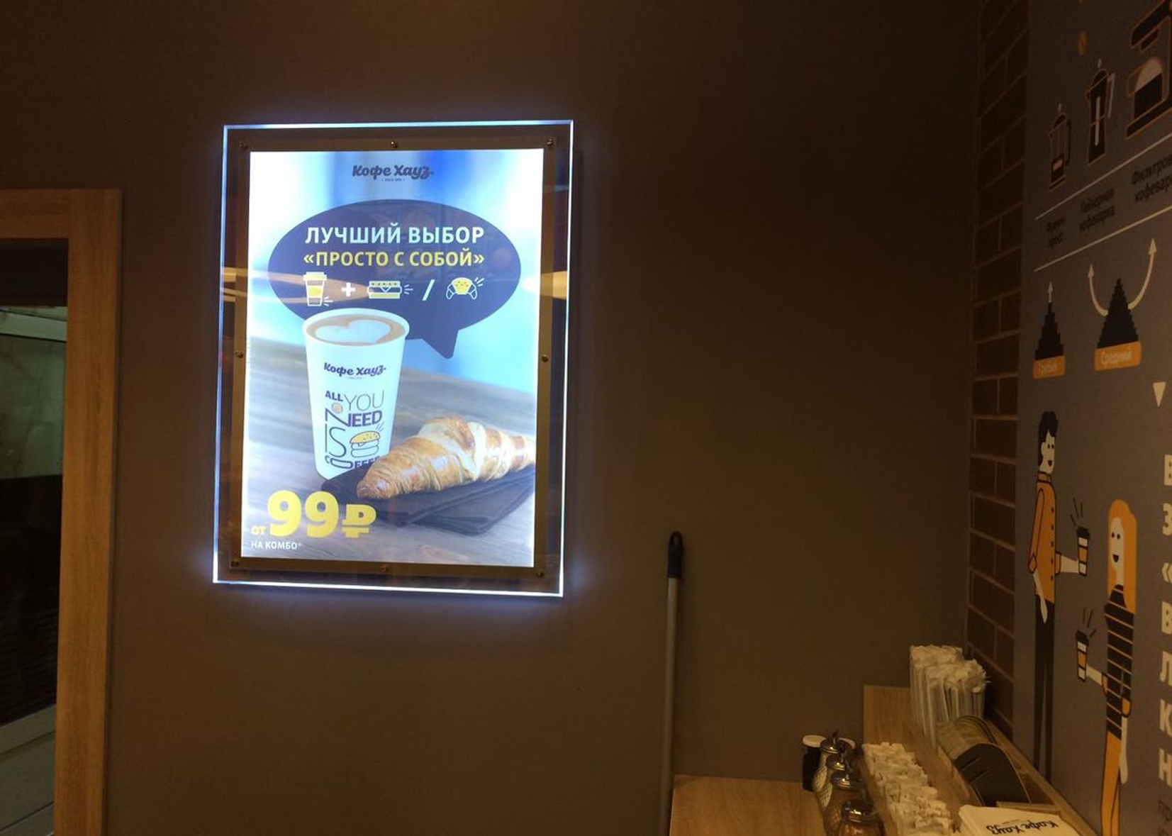 Размещая рекламу в кафе, вы сможете мгновенно охватить всех людей без исключения. Обратите внимание на крупные бренды, такие как Макдоналдс, KFC, Леруа Мерлен, Ашан и другие, понимающие, что прибыльность бизнеса зависит, в том числе и от того, насколько быстро потенциальный покупатель, клиент или заказчик увидит размещенную рекламу. Рекламные конструкции, установленные в кафе, подходят для этого как нельзя лучше.