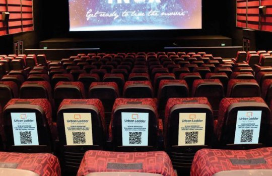 Пример рекламы в виде стикеров на спинках кресел в кинотеатрах:
