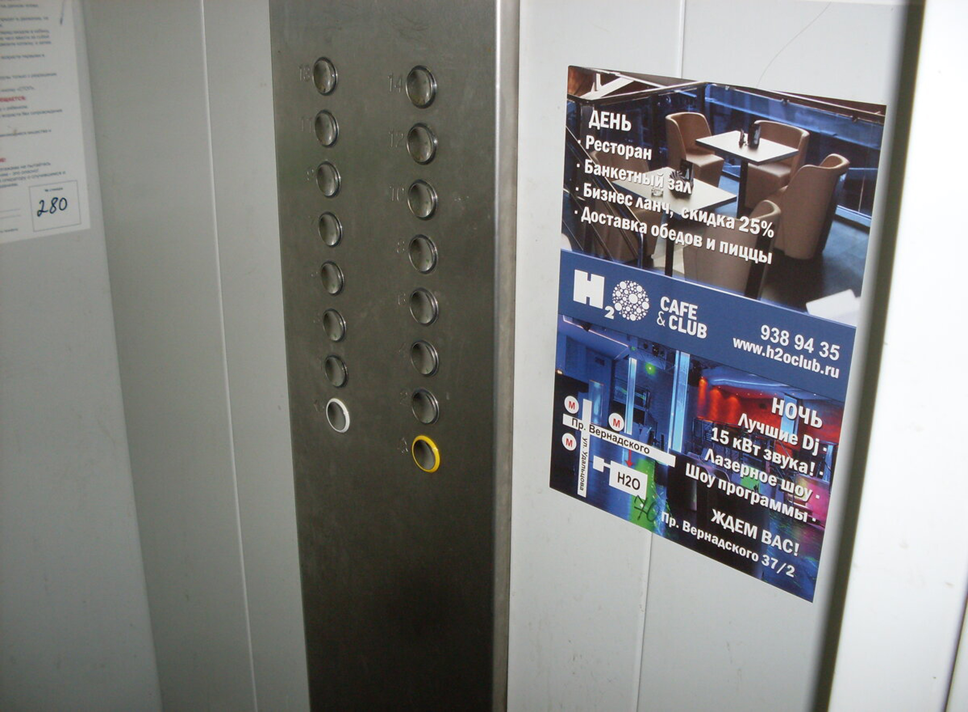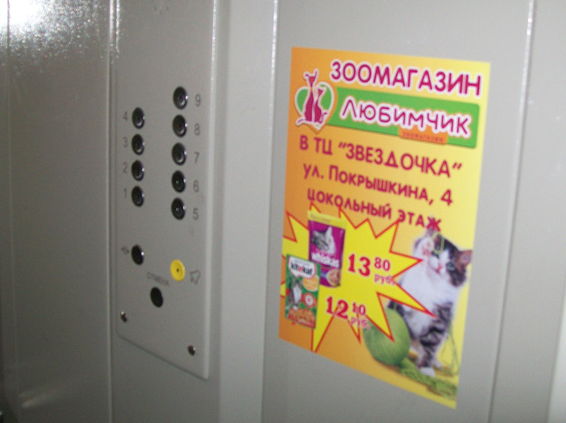 Примеры наших работ при размещении рекламы в лифтах представлены ниже: