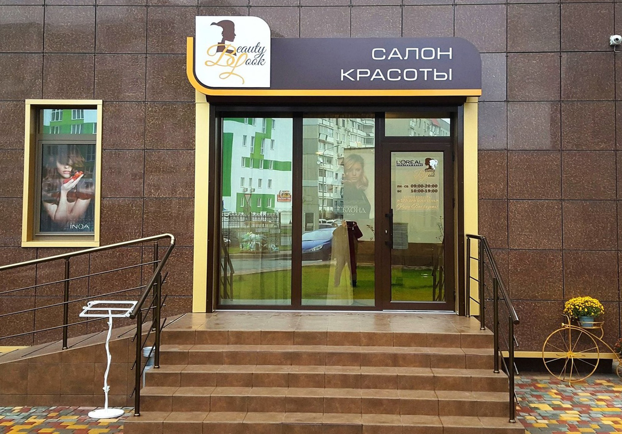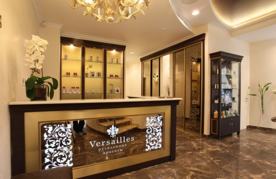 Пример брендирования входа и зоны ресепшн в салонах красоты: