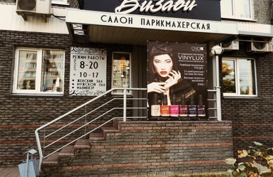 Пример рекламного баннера на здании салона красоты: