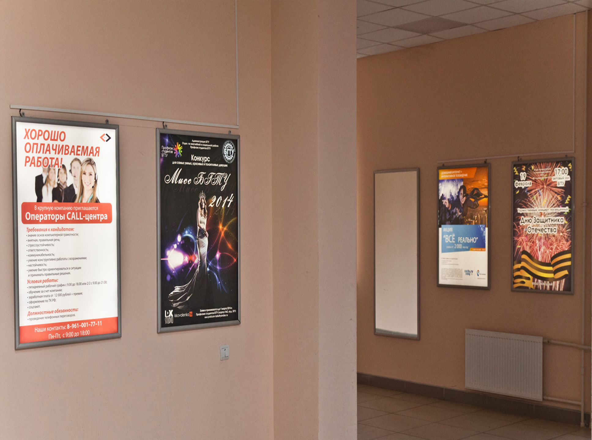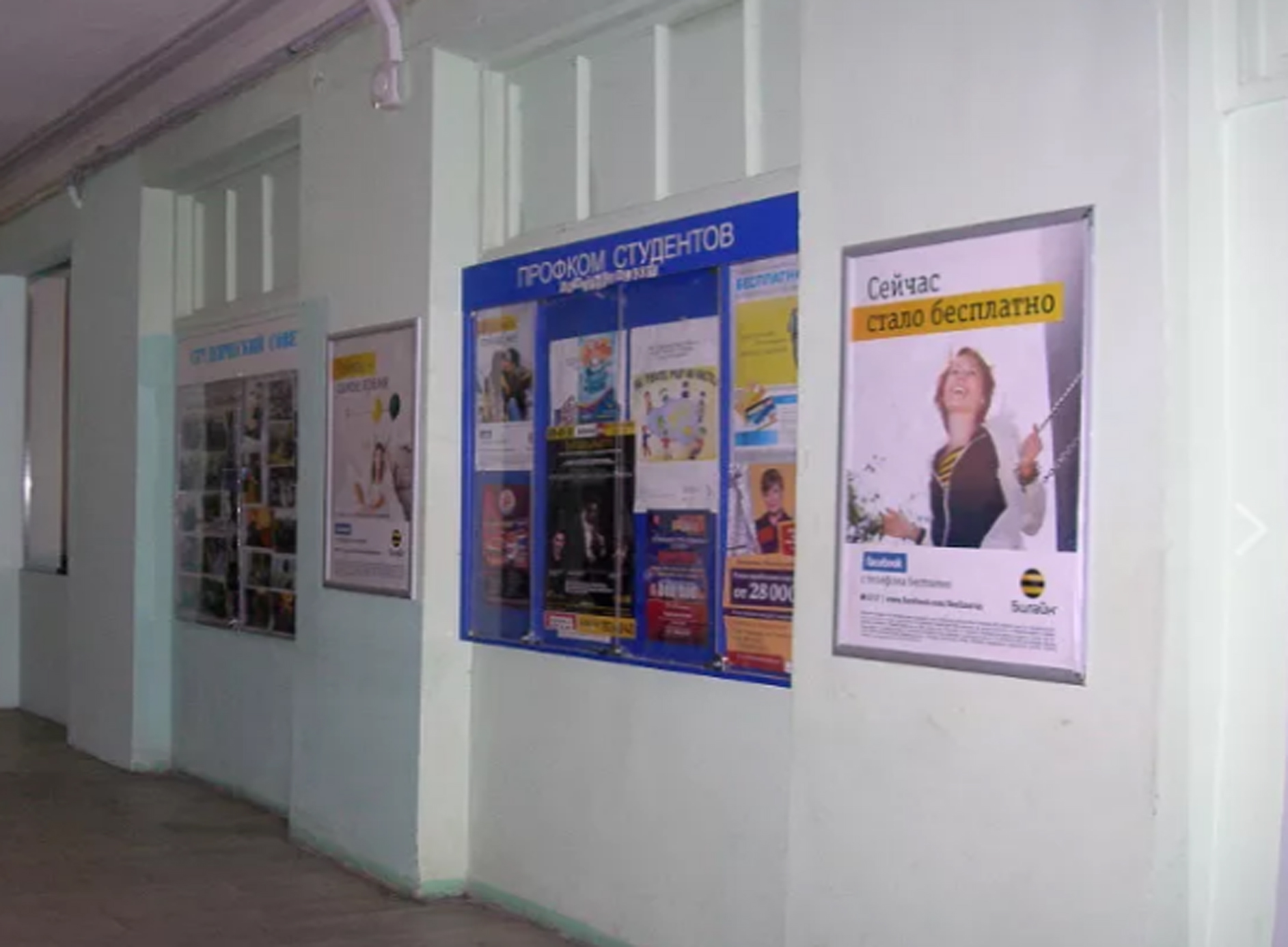 Монтаж рекламы в ВУЗах осуществляется по-разному в зависимости от того, какой рекламный материал размещается.