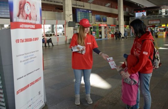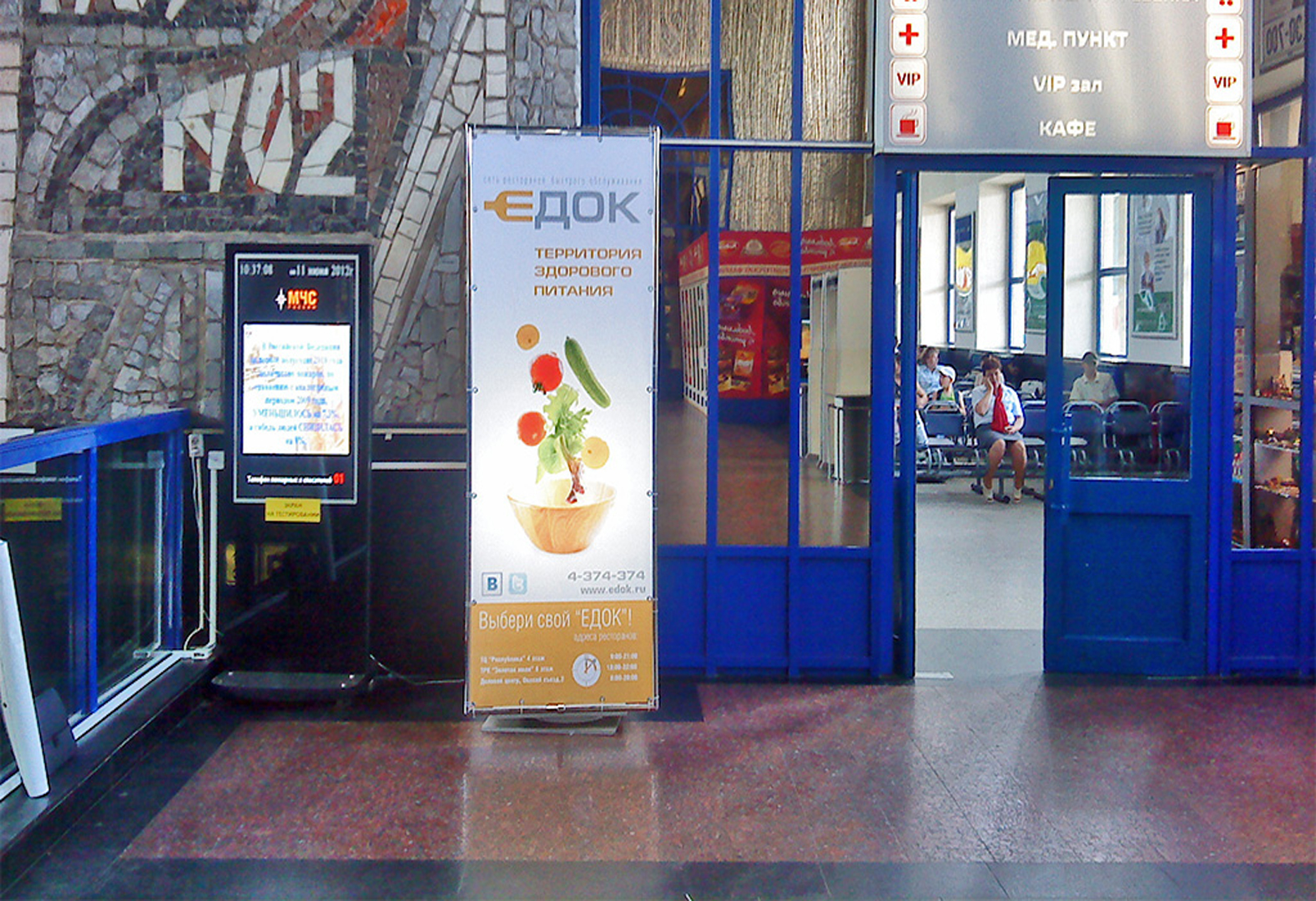Пример печатных рекламных материалов в железнодорожном вокзале: